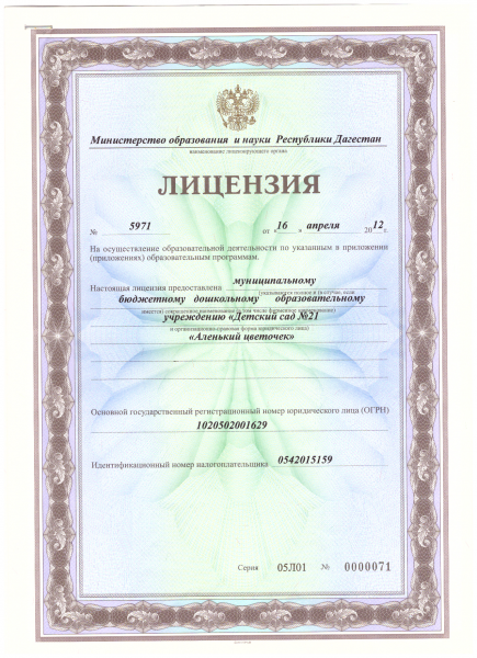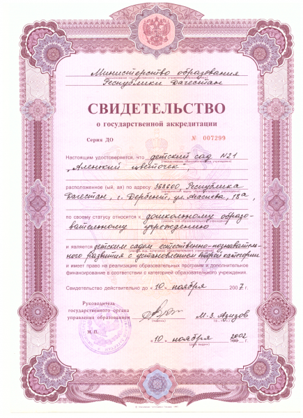 | Полное наименование образовательной организации* | Муниципальное бюджетное дошкольное образовательное учреждение городского округа "город Дербент" "Детский сад № 21 "Аленький цветочек"" |
